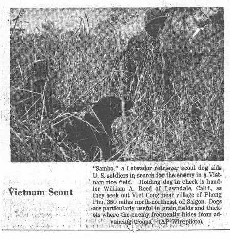 | In this AP Wirephoto Sambo (5A15) and Bill Reed are incorrectly identified as scout dog and handler. They were both members of CTT #7. | ||||