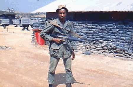 them up. This is Merle waiting for a ride back to Camp Eagle for a well earned rest! |